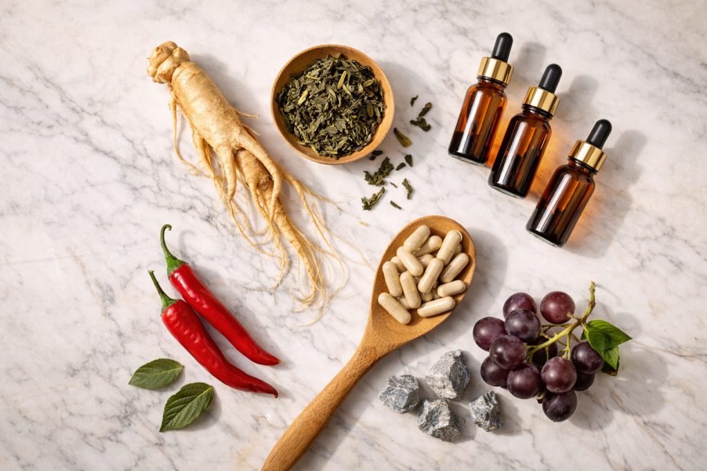 | 🔄 Circulatory Support | Cayenne, Resveratrol |